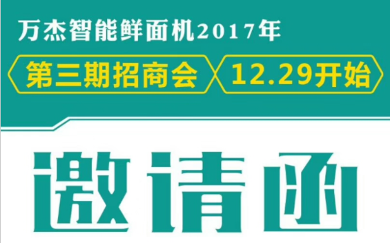 2017年即將過去,這一年,萬(wàn)杰智能收獲滿滿,智能鮮面機(jī)商業(yè)模式逐漸成型,全國(guó)招商火爆持續(xù),熱度不減,萬(wàn)杰智能衷心的感謝合作伙伴的支持與信任。乘著2017年精彩不斷的“尾巴”,為回饋客戶的期待,萬(wàn)杰智能現(xiàn)決定正式召開第三期招商會(huì)。 ★時(shí)間:2017年12月29日(本周五)。 ★地點(diǎn):萬(wàn)杰智能總部。 ★內(nèi)容:萬(wàn)杰智能將帶您參觀工廠、進(jìn)行項(xiàng)目解讀、商務(wù)洽談,為您全面展示智能鮮面機(jī)樣板市場(chǎng)及前兩期合伙人的運(yùn)營(yíng)情況等。 ★聯(lián)系電話:400-667-9528;156-1726-7952。 搜索 復(fù)制 |