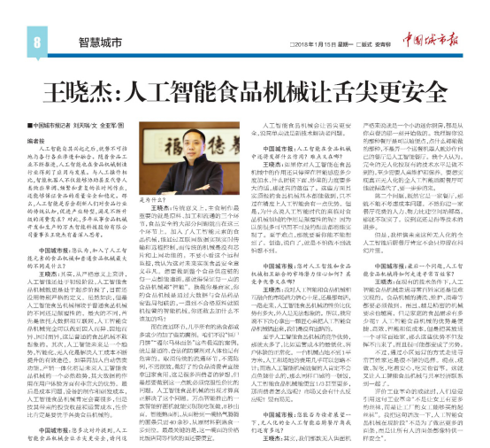 《中國(guó)城市報(bào)》點(diǎn)贊萬(wàn)杰智能:人工智能讓舌尖更安心