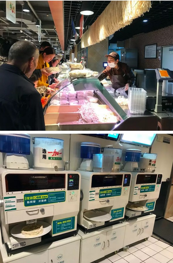 2016年下半年,許昌市作為樣板市場(chǎng),正式開始鋪設(shè)鮮面機(jī),不知不覺,已快3年,目前許昌市大范圍鋪設(shè)鮮面機(jī),樣板市場(chǎng)從創(chuàng)立到發(fā)展至今逐漸成熟,經(jīng)過了一段創(chuàng)新實(shí)踐的探索之路。 從進(jìn)駐雜面館到制作出的雜面條成為餐桌上的美味,從入駐胖東來等知名商超到被眾多老百姓熟知并認(rèn)可,從傳統(tǒng)渠道的深耕再到打破常規(guī),入駐中原銀行,為全國(guó)的客戶與合作伙伴提供更多可借鑒的發(fā)展新思路。許昌市越來越多的老百姓,已經(jīng)習(xí)慣了鮮面機(jī)的陪伴,甚至,有些依賴。 這期間,有思考也有收獲,F(xiàn)如今,就智能鮮面機(jī)許昌市場(chǎng)的發(fā)展最新進(jìn)展總結(jié)如下,希望與朋友們分享、共勉,能為朋友們帶來更多的借鑒。 一、 面館寵兒,省人工,配比好掌控。 在許昌有很多只賣雜面條的餐館,店里以主打雜面條為主,這類餐館就因?yàn)橘u這種雜面條備受歡迎。而且,雜面條既美味又營(yíng)養(yǎng),逐漸被越來越多的消費(fèi)者認(rèn)可。其中,許昌的野菜黑豆面和琛晟客來香雜面館是兩個(gè)新開業(yè)不久的雜面館。店老板表示,之所以選用智能鮮面機(jī),一方面,可以有效的節(jié)省人工,降低成本;另一方面,雜面條的配比很重要,智能鮮面機(jī)現(xiàn)吃現(xiàn)做,可以輕松的調(diào)制面條和雜糧的比例,有效的保障面條的口感。此外,面條吃多少做多少,沒有浪費(fèi),為他們解決了做面的大難題。 值得一提的是,在琛晟客來香雜面館擺放了兩臺(tái)智能鮮面機(jī)設(shè)備。一臺(tái)擺放在一樓的進(jìn)門處,可以與消費(fèi)者面對(duì)面實(shí)現(xiàn)互動(dòng)溝通,有效的聚集了人氣。另一臺(tái)則擺在后廚擔(dān)當(dāng)起重任。兩臺(tái)智能鮮面機(jī)設(shè)備同時(shí)工作,成為店中不可或缺的“關(guān)鍵人物”。 二、 現(xiàn)制面條逐漸在商超店中成為流行。