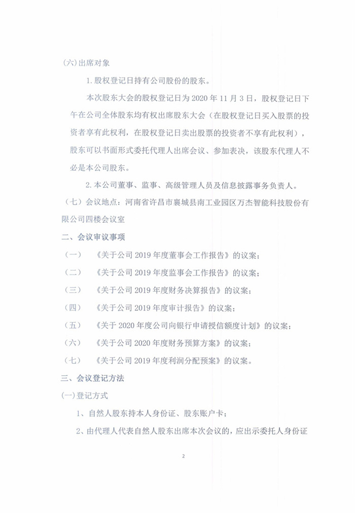 萬杰智能關(guān)于召開2019年年度股東大會的通知公告